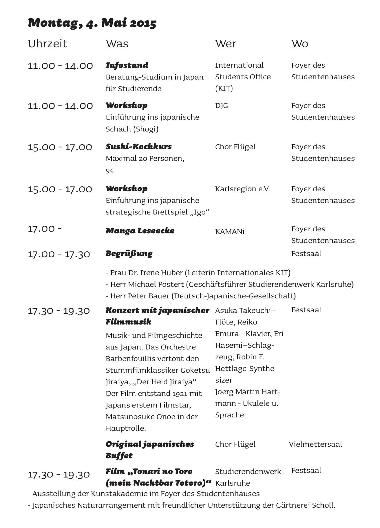 Der Japantag 2015 fand am Montag, 4. Mai 2015, statt.[1] Unter anderem mit
